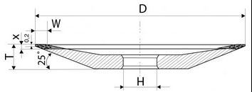 H - diska (slīpripas) iekšējais diametrs: 32 mm.