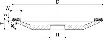 Elbora (borozona) slīpripa (asināšanas disks), Forma 12A2-20, izmērs 125x16x2x10x32, CBN1 grauds 160/125, Poltava Diamand Tools