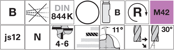 | Kods | Diametrs (mm) | Kāta diametrs (mm) | Kopējais garums (mm) | Darba garums (mm) | Zobu skaits |