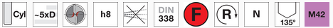 GÜHRING īsie spirālurbji ar īpaši augstu nodilumizturību, ar 8% kobaltu leģēts HSCO ātrgaitas tērauds, DIN 338, cilindrisku stiprinājumu, 1199 sērija