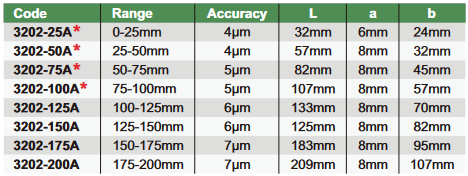Gradācija (mērījumi): 0.01mm . Karbīda mērīšanas virsmas