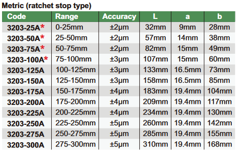 Gradācija (mērījumi): 0.01mm . Karbīda mērīšanas virsmas