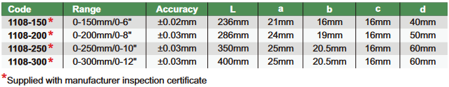 0.01mm/0.0005". Atbilst DIN862. Precizitāte +-0.03mm.