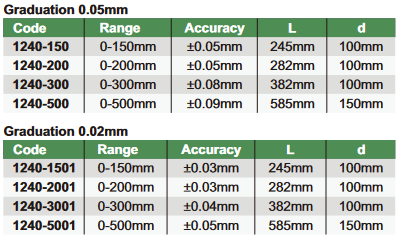 Mērījumi (gradācija) 0.05mm. Precizitāte +-0.05mm.