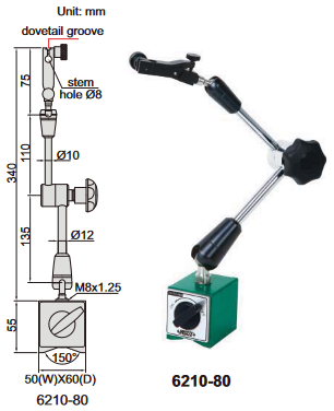 INSIZE magnētiskais statīvs indikatoram, universālais, 80kgf, ⌀8mm, art. 6210-80