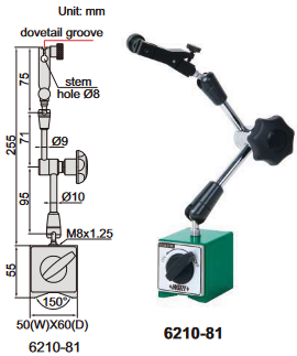 INSIZE magnētiskais statīvs indikatoram, universālais, 80kgf, ⌀8mm, art. 6210-81