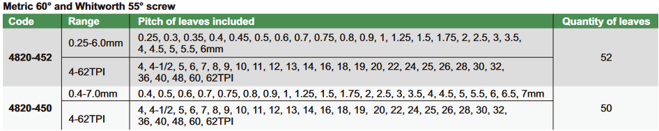 . 0.25-6.0 mm. 4-62 TPI