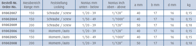 Hromēts, rūdīts; Četrvirzienu mērījumi; Skalas garums 150 mm. Iedaļas vērtība 1/50 jeb 0,02 mm.