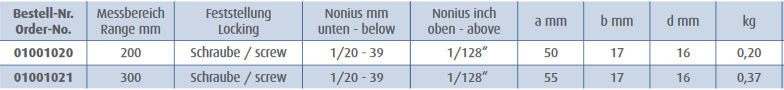 MIB Messzeuge Bīdmērs 200mm, ied.vērt. 1/20 (0,05mm), 01001020