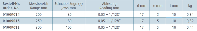 MIB Messzeuge Bīdmērs 300mm, žokļi 100mm, viegla versija, 01009016