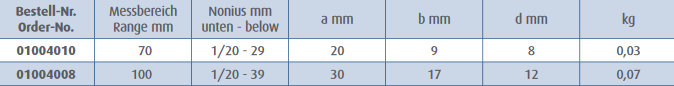 MIB Messzeuge Bīdmērs 70mm, ied.vērt. 1/20 (0,05mm), mazais, ar skrūvi