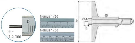 MIB Messzeuge Dziļummērs 80mm, ar adatas galu, ied.vērt. 1/20 (0,05mm), 01015008