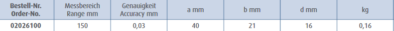 Izgatavots no nerūsējošā tērauda; Rūdīts; Četrvirzienu mērījumi; DIN 862; Ar futrāli. Skalas garums 150mm. Precizitāte 0,03mm.