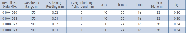 Izgatavots no nerūsējošā tērauda; Rūdīts; Četrvirzienu mērījumi; DIN 862; Ar futrāli. Skalas garums 150mm. Iedaļas vērtība 0,01mm.