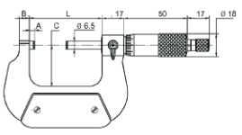 Ar karbīda mērīšanas virsmām; Hromēta skala; Rāmis ar pārklājumu; Vārpsta Ø 6,5 mm, Vītnes solis 0,5 mm; Ar sprūdratu; Mērogs 0,01 mm; Precizitāte DIN 863; 25 - 50 mm ar standartu; Futrālī.
