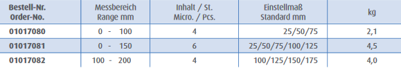 Ar karbīda mērīšanas virsmām; Hromēta skala; Rāmis ar metāla pārklājumu; Vārpsta Ø 6,5 mm, Vītnes solis 0,5 mm; Ar sprūdratu; Mērogs 0,01 mm; Precizitāte DIN 863; 25 - 50 mm ar standartu; Koka kastē.