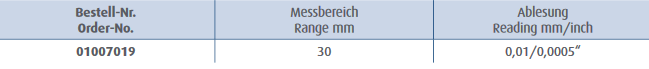 Izgatavots no plastmasas; 30mm diapazons. 0,01mm nolasījums. Pamatne 60mm.