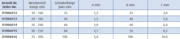 MIB Messzeuge iekšmēra bīdmērs 10-160 mm, rievots, art. 01006012