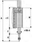 Precizitāte atbilstoši darbu standartam; Metāla korpuss; Ar pielaides atzīmēm; Standarta kāts 8 h6; Skalas virsma pagriežama ar ārējo gredzenu; 0,01 mm nolasījums. Futrālī.