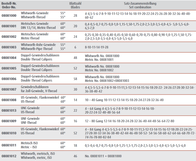 MIB Messzeuge vītņu mēri, Metriskā - ISO vītne, 60°, komplekts no 18 gb, 08081011