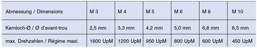 VÖLKEL kombinētais vītņu urbis (urbis, vītņu urbis, zeņķeris), ar seškanšu 1/4'' stiprinājumu 30°, HSS-G, izmērs M3